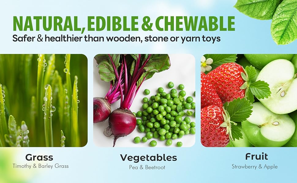 - [ Teeth Grinding ] : The natural odor of timothy grass chew toys entices furry pets to chew and distracts small pets from cages, beds and other furniture