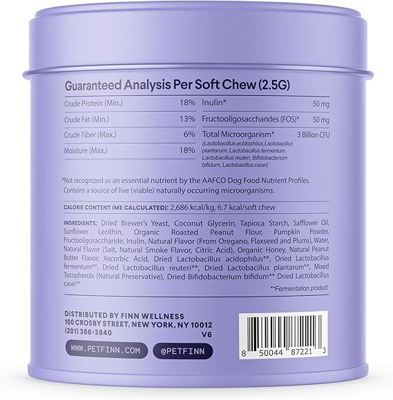 - Beneficial Probiotics | Each soft chew contains 6 different strains & 3 Billion CFU of live probiotics -- 'good' bacteria that aid in digestion and nutrient absorption, help improve bowel movement, and support overall immune health.