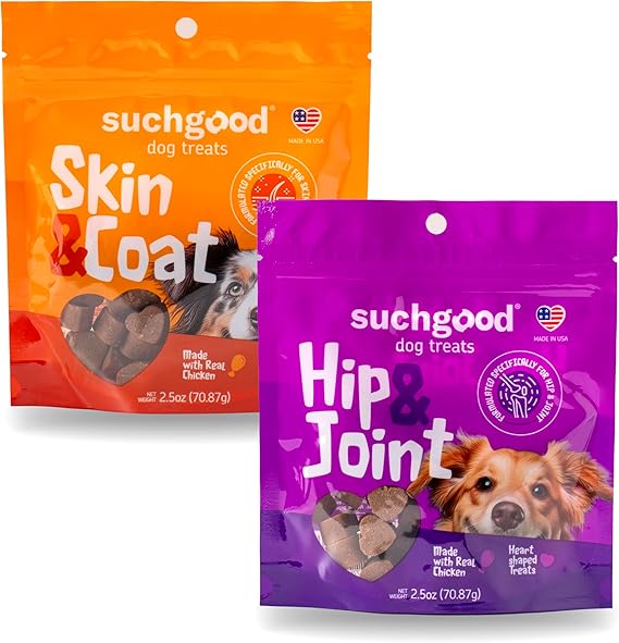 - Healthy Skin & Shiny Coat - Suchgood Skin and Coat Dog Treats are formulated with Omega 3 and Omega 6 salmon oil to nourish your dog's coat and skin.