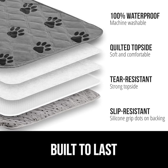 - DURABLE 5 LAYER DESIGN: blanket features a durable 5 layer design for ultimate protection; the soft quilted top layer is tear and fade resistant, 2 inner layers provide padding; the 4th inner layer features waterproof TPU; the 5th slip resistant backing layer features grip dots that help keep it in place