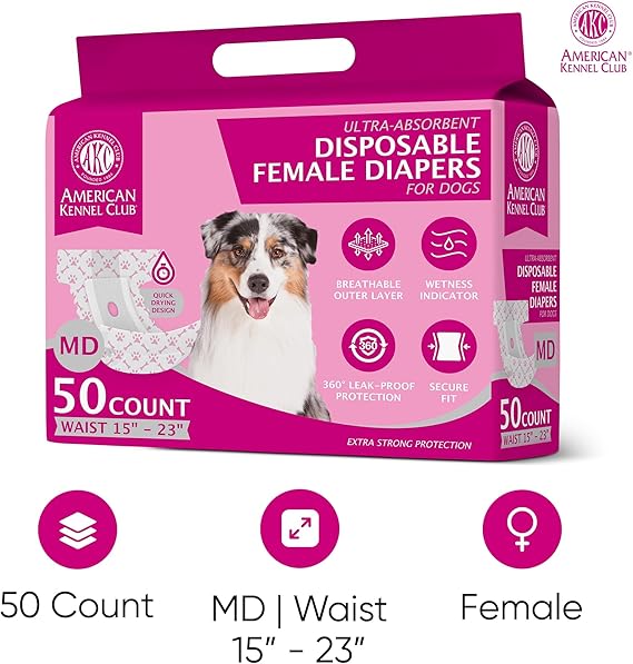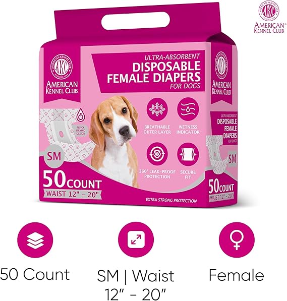 American Kennel Club Female Dog Wrap, Disposable Diapers with Wetness Indicator, X-Small, 50 Count