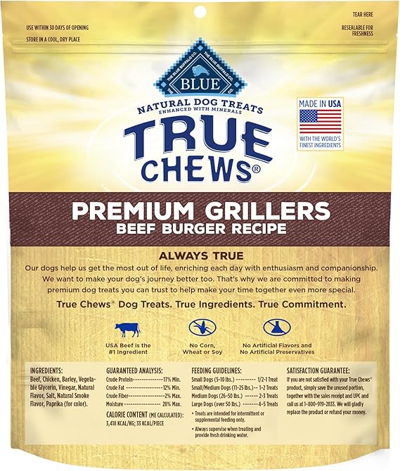 Give your dog the taste of real chicken with BLUE True Chews Pork and Sausage Recipe Natural Dog Treats. Made with real USA pork as the first ingredient, these tender dog treats are easy to tear into smaller pieces, so they're great for dogs of all breed sizes and ages. And like all Blue Buffalo dog treats, these treats for dogs never contain chicken (or poultry) by-product meals, corn, wheat, soy, artificial flavors, or preservatives. Watch their tail wag when you reward them with BLUE True Chews Dog Treats.