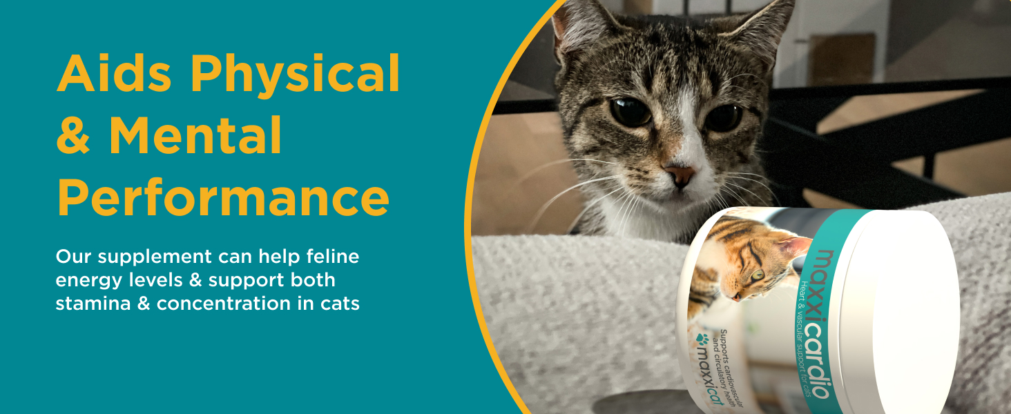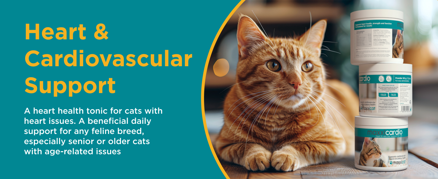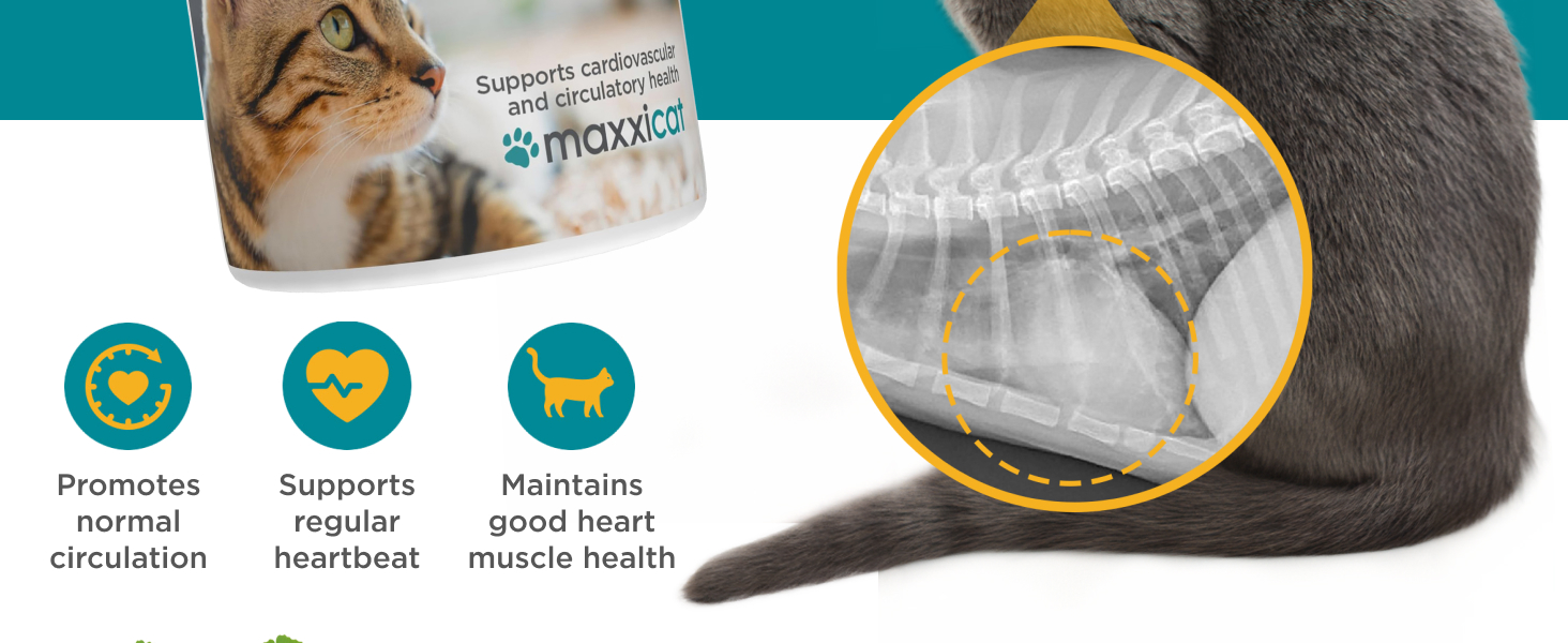 - HEART & CARDIOVASCULAR SUPPORT: maxxicardio can assist feline cardio function by aiding normal circulation; it can help maintain heart muscle strength & tissue health.