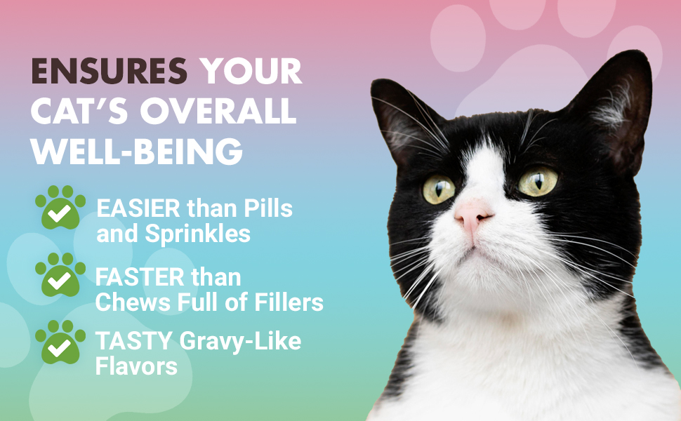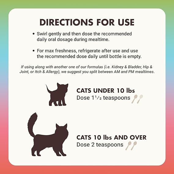 - Once-a-Day Liquid Dosing at Mealtime: Better than a multi-vitamin. Faster than powders, pills, or pastes—just a quick daily dose added to your cat's regular routine.
