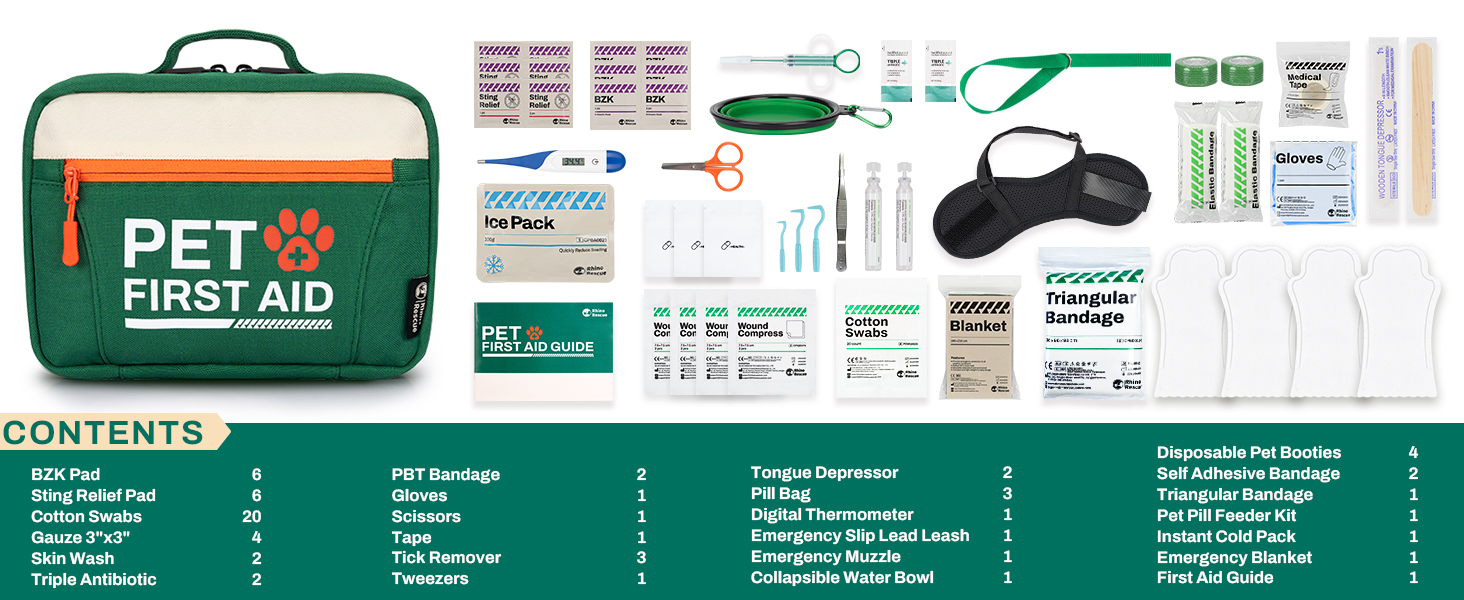 - Supports Daily Care Needs: Equipped with a thermometer, feeding kit, muzzle, pill bag, water bowl, and disposable foot booties, this emergency bag can assist with daily pet care and feeding medications, helping you meet your pet's health needs