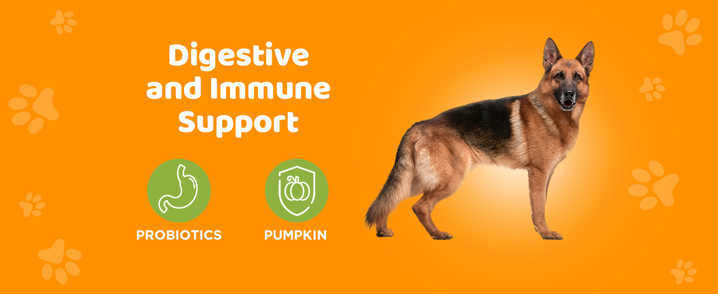- Aid Digestion With 1 Billion CFU Probiotics - We Wanted To Cover Every Area Of Your Dog's Health. Which Is Why Our 10 In 1 Multivitamin Contains Optimal Levels Of Probiotics, Sweet Potato, & Pumpkin To Help Keep Your Dog's Digestive System Running Smoothly.