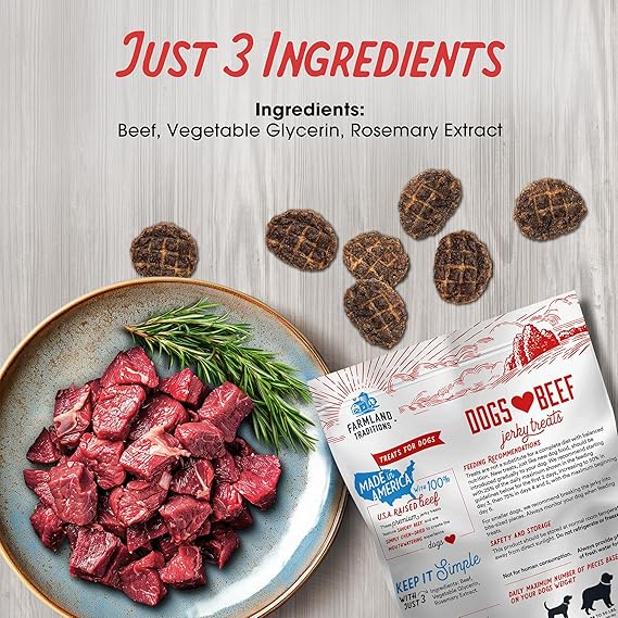 - Premium Dog Jerky Treats: These high-protein dog treats are made with 3 all-natural ingredients, including high-quality beef raised in the USA