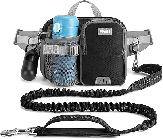 ETACCU Hands Free Dog Leash with Phone Pouch, Water Bottle Holder - Adjustable Waist Belt 19-38 Inch Belt Leash for Running, Reflective Shock Absorbing 37"-54" Extendable