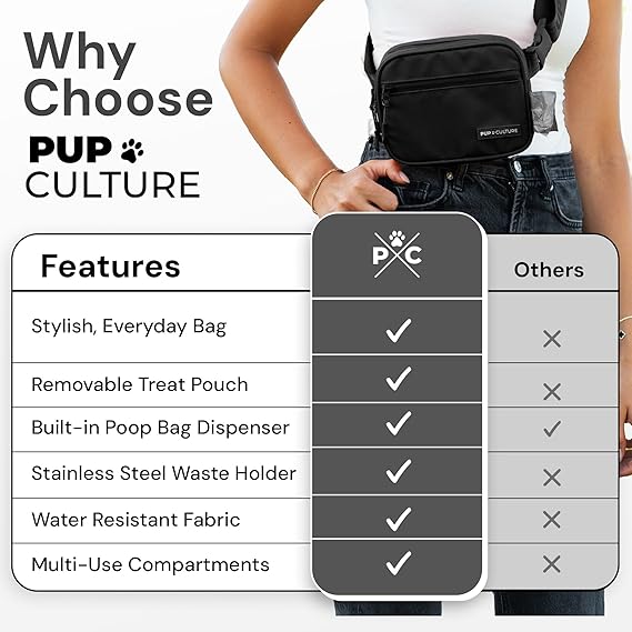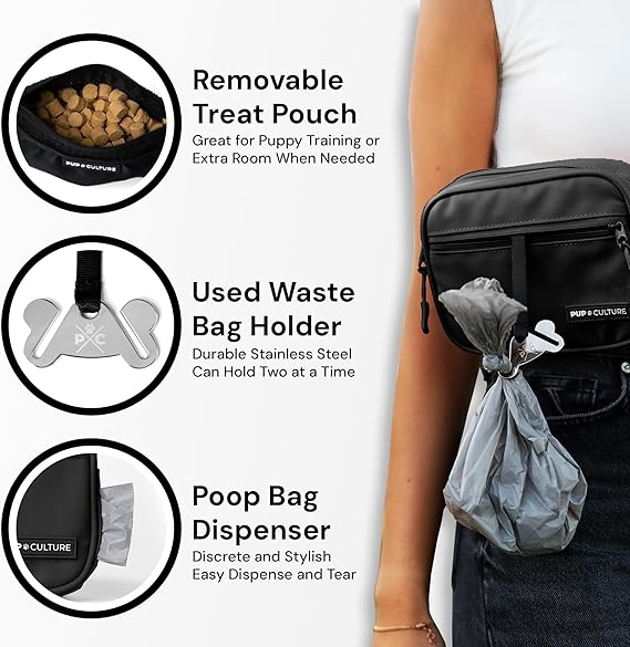 Pup Culture Dog Treat Pouch with Poop Bag Dispenser and Removable Treat Pouch | Cross Body Dog Walking Bag | The Perfect Puppy Training Tool and Even Better Gift