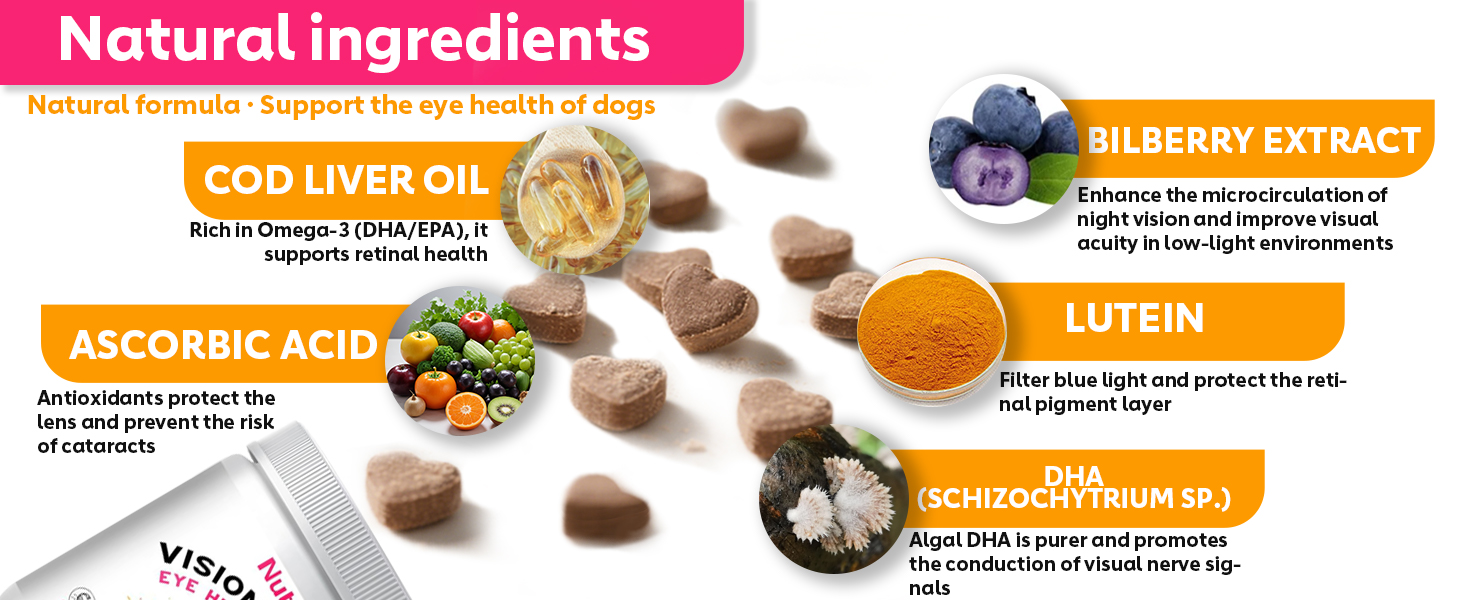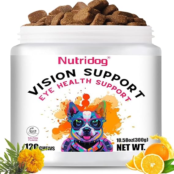 - ADVANCED EYE HEALTH FORMULA WITH COD LIVER OIL & ANTIOXIDANTS - Nutridog Eye Supplements deliver 12 essential nutrients including DHA from algae, Bilberry Extract, and Lutein to combat oxidative stress and reduce inflammation. Scientifically formulated to support retinal function and shield against UV damage, these soft chews target cataracts, dry eyes, and conjunctivitis while promoting long-term ocular resilience. Ideal for aging dogs or breeds prone to vision decline