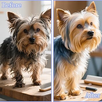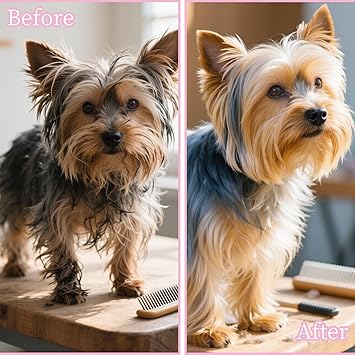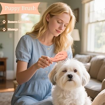 - Gentle Soft Bristles for Sensitive Coats: Our small dog brush is designed with the utmost care for your pet’s comfort. The soft bristles are expertly crafted to be gentle yet effective, making it suitable for even the most sensitive small dogs. Whether your furry friend has long, flowing locks or short, fine fur, these bristles effortlessly detangle knots, remove loose hair, and distribute natural oils, leaving the coat shiny, smooth, and healthy.