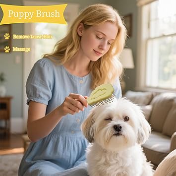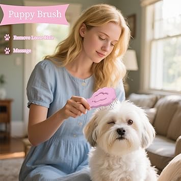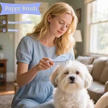 - Essential Grooming Tool for Small Dog Owners: This cloud-shaped soft bristle brush is an essential addition to any small dog owner’s grooming kit. It’s suitable for puppies and adult small dogs alike, making it a versatile choice for all stages of your pet’s life. The brush is easy to clean - simply remove the loose hair from the bristles and rinse it under water.