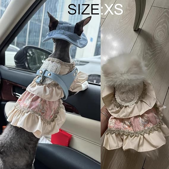 - The style of this dress is retro and exquisite, with many eye-catching exterior design points. It can make pets look more adorable.
