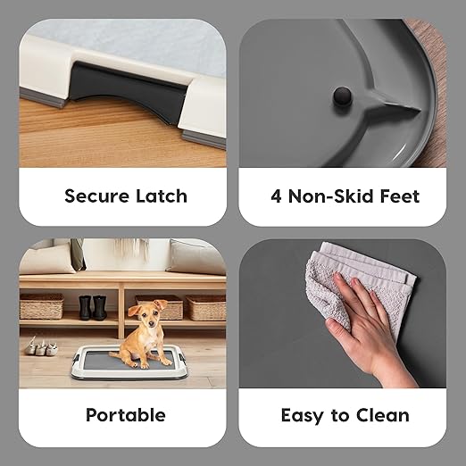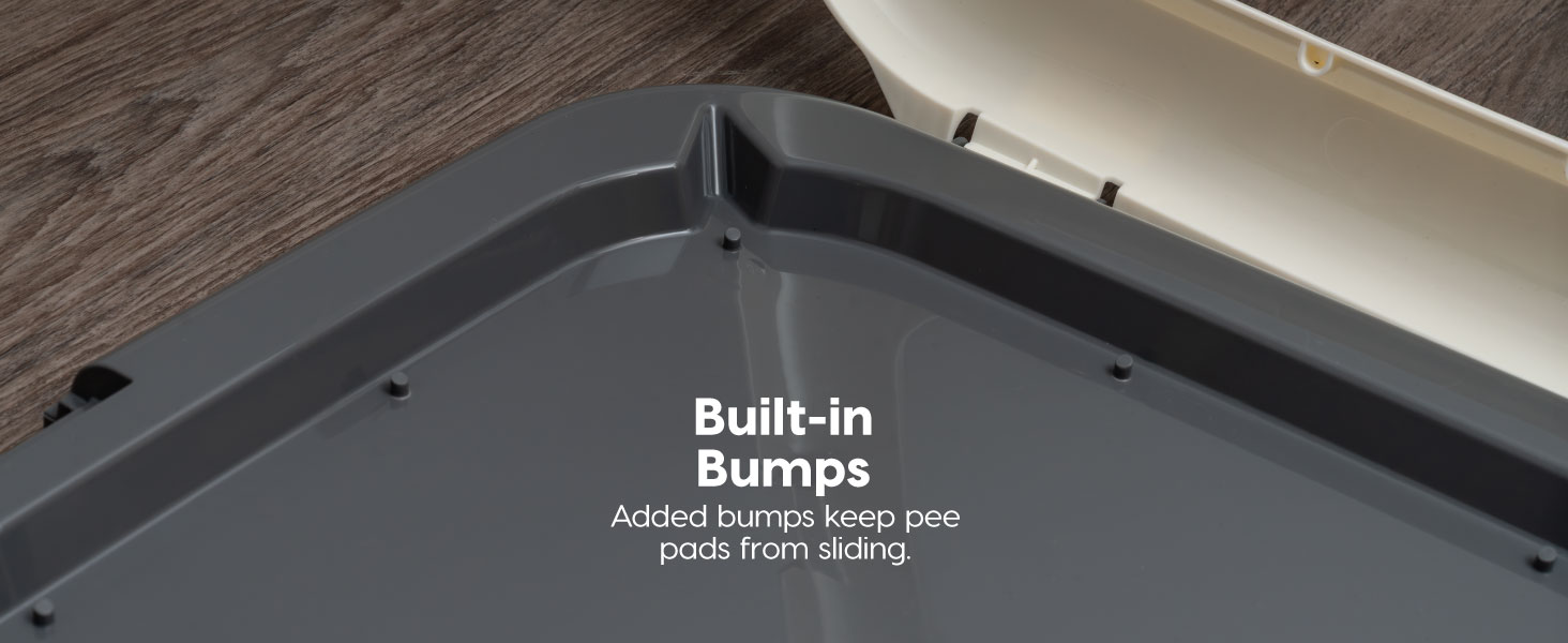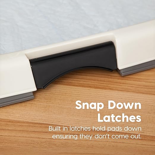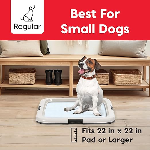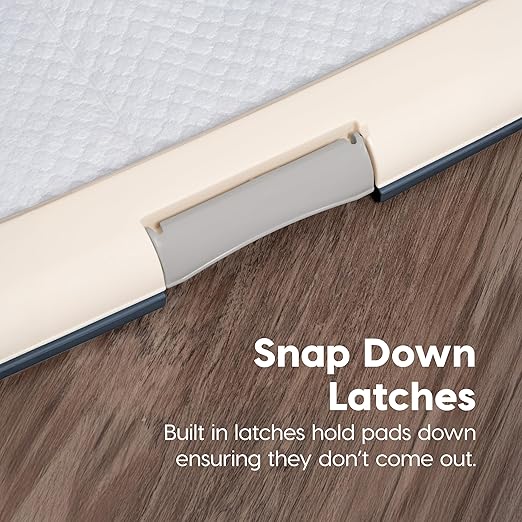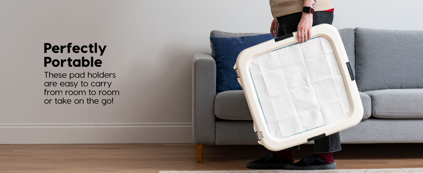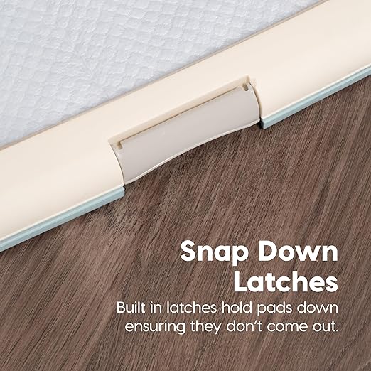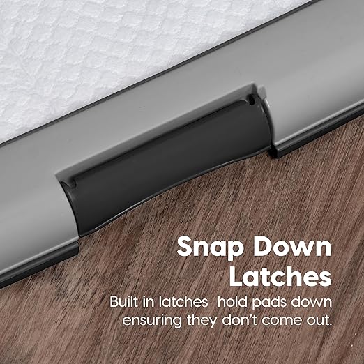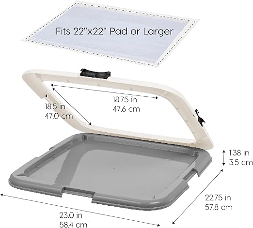 IRIS USA Pee Pad Holder is the ultimate solution for keeping your floors clean and your pet’s potty area tidy. Perfect for potty training puppies or managing incontinence in adult dogs, this pee pad holder ensures your pet's training pad stays securely in place throughout the day. Designed to work seamlessly with IRIS USA Neat n' Dry Pet Training Pads, fitting 22x22" Pads or larger, the holder prevents slipping, tearing, and shifting, creating a stable, hygienic environment for your pet. The double latches lock the pad firmly in place, providing added security and preventing accidental messes. The durable holder is built to protect your floors from spills, leaks, and scratches, making it ideal for use in homes, apartments, or pet-friendly offices. Non-skid rubber feet keep the holder steady, even during the most active training sessions, while its easy-to-clean surface simplifies maintenance. Whether you're at home or away, this holder provides a safe, reliable, and convenient potty solution, giving you peace of mind and reducing the stress of cleanup. Say goodbye to messy accidents and hello to a cleaner, more organized living space with the IRIS USA Pee Pad Holder — your go-to solution for pet potty training.
