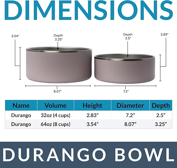 Durango Insulated Stainless Steel Dog Bowl with Nonslip Base, 32 oz. (4 Cup Capacity), Midnight Black Color