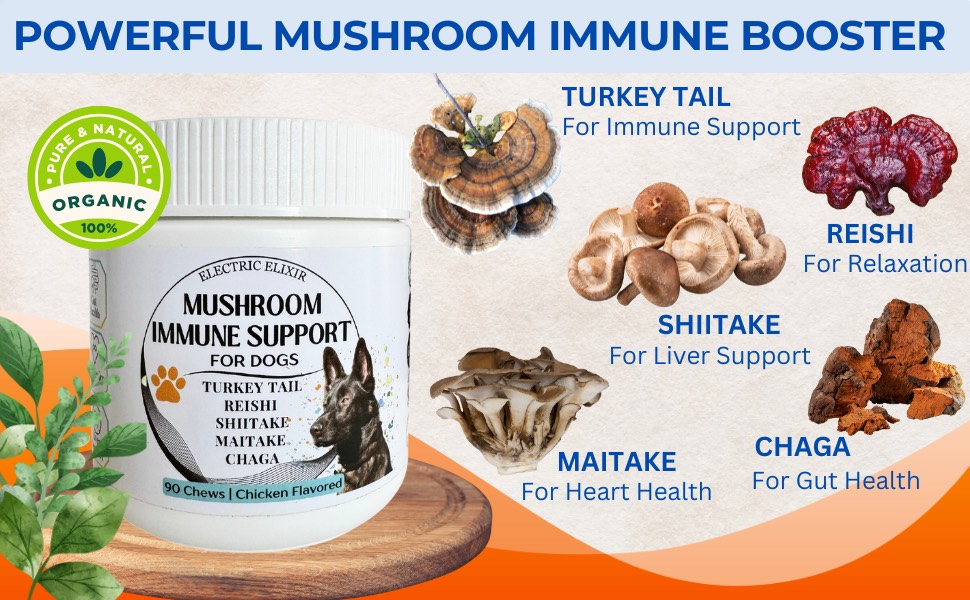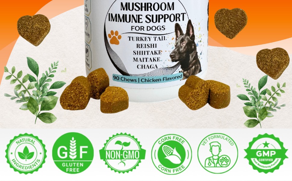 - PREMIUM NATURAL INGREDIENTS - High protein, human grade, no added sugar, wheat, corn, gmo or preservatives. Our mushroom supplement for dogs ensures the highest quality and effectiveness for your pet's health