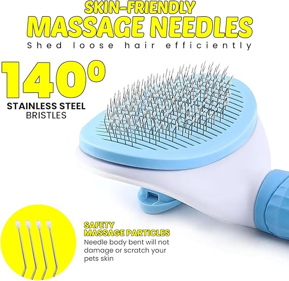 - Self-Cleaning Dog Brush: Introducing the dog brush for shedding, featuring retractable push button technology for easy hair removal. This slicker brush for dogs has skin-friendly massage needles, making grooming sessions comfortable and efficient. Perfect for pet grooming and shedding control.