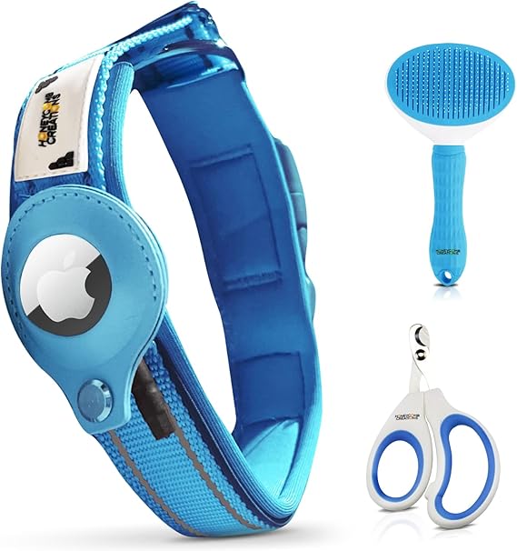 Essential Pet Supplies: Pet Collar for Small Dogs with Reflective AirTag Holder and Secure,Comfortable Padding Bundled with Safe Dog Nail Clippers and Self-Cleaning Dog Brush