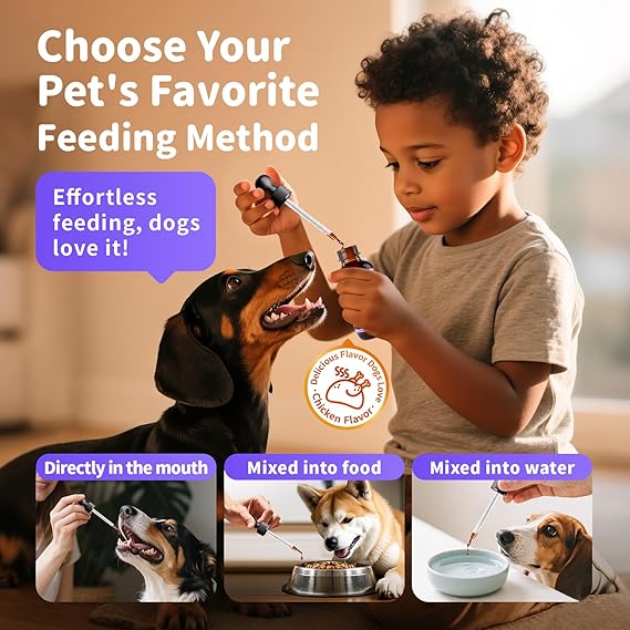 - EASY-TO-USE & PALATABLE LIQUID DROPS:Our liquid Collagen Dogs supplement is effortlessly administered by mixing into food. The chicken flavor ensures even the pickiest eaters will easily enjoy their daily dose.