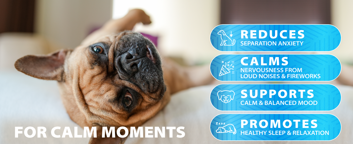 - Natural Calming Aid - Is your dog showing signs of pain and discomfort while moving about? Our natural Calming Treats for dogs will provide quick and lasting relief from sore, painful and aching joints
