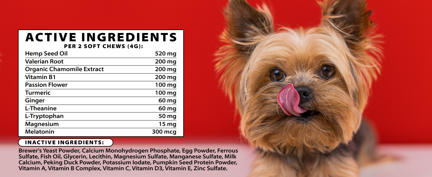 - No Side Effects - Our Dog Calming chews only delivers a gentle sedative effect and does not contain any artificial chemicals that can cause unwanted side effects
