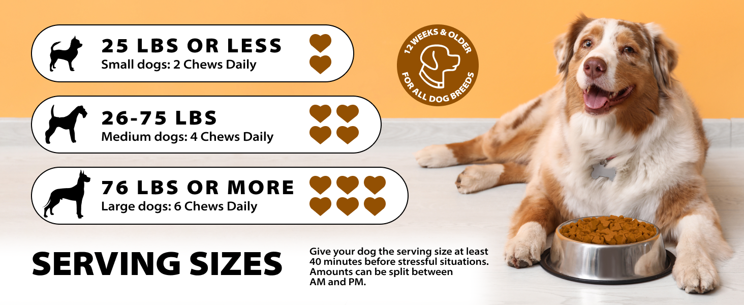 - Relieves Stress & Anxiety - Our Dog Calming Treats will keep your furry friend calm and composed during stressful situations, such as visits to the vet, long road trips, or being left alone at home