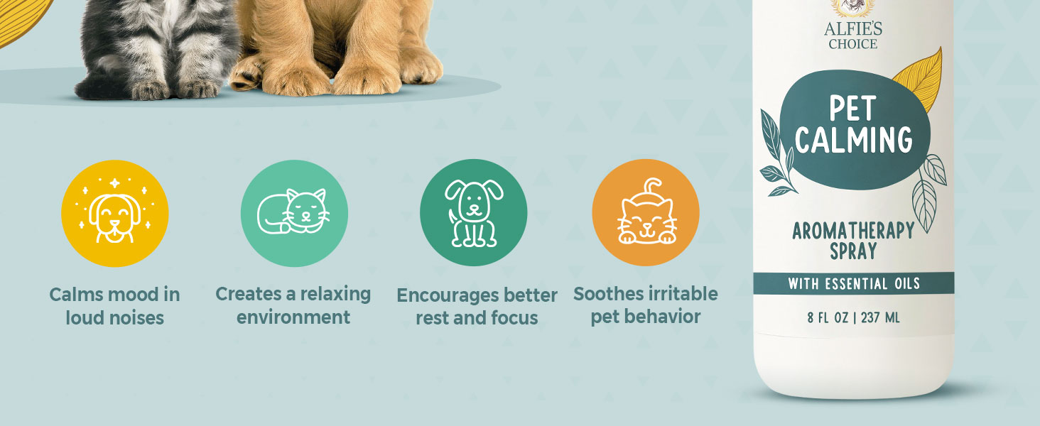 ALFIE'S CHOICE Pet Calming Aromatherapy Spray - Cat Calming Spray for Indoor Use & Travel - Dog Relaxation Mist with Essential Oils - Natural Scent for Grooming, Loud Noises - 8 fl oz