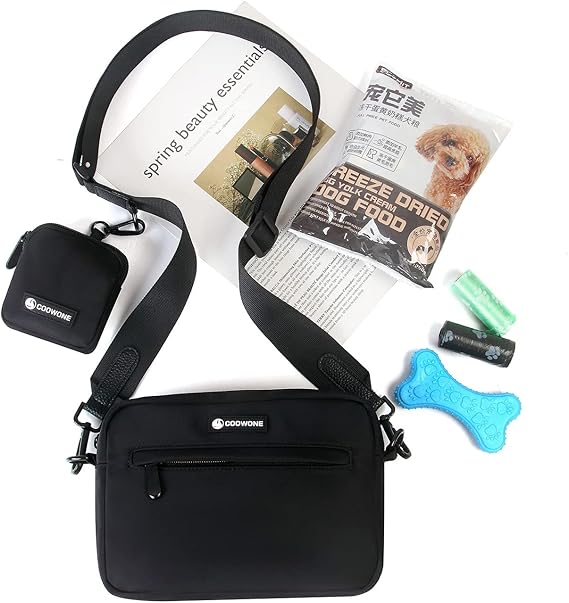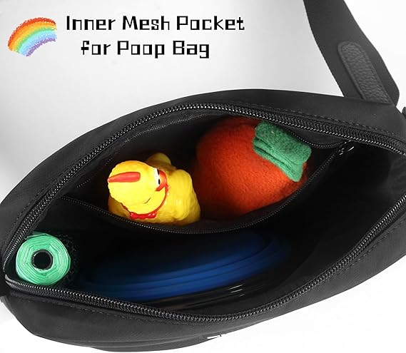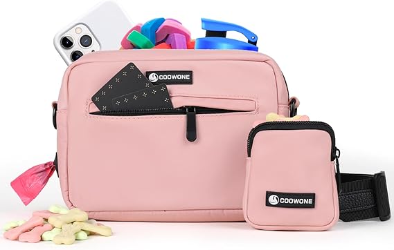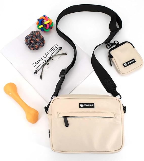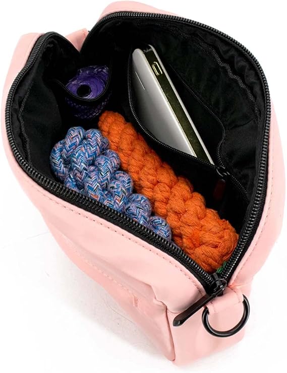 - [Large Capacity ] This dog treat pouch has a large main compartment and inner zipper pocket, store pet supplies like dog treats, dog toys, phones and more! It include a small pouch bag that store your earphone and cards.It can also be used as an everyday crossbody sling bags for women and men.