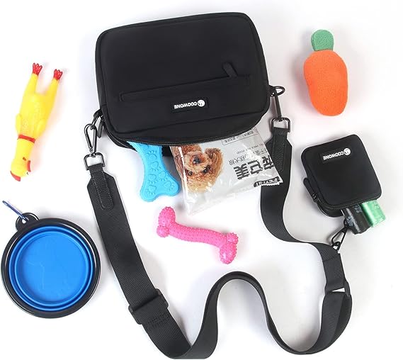 - [Durable and Convenient] We also carry this dog training bag to and from work or for walking our dogs. Its wear-resistant fabric and metal clasp make it extremely durable, and it comes with a small mesh poop bags container that you can easily extract from the outside of the bag, which allows you to stay prepared all times during any outings with your pet.