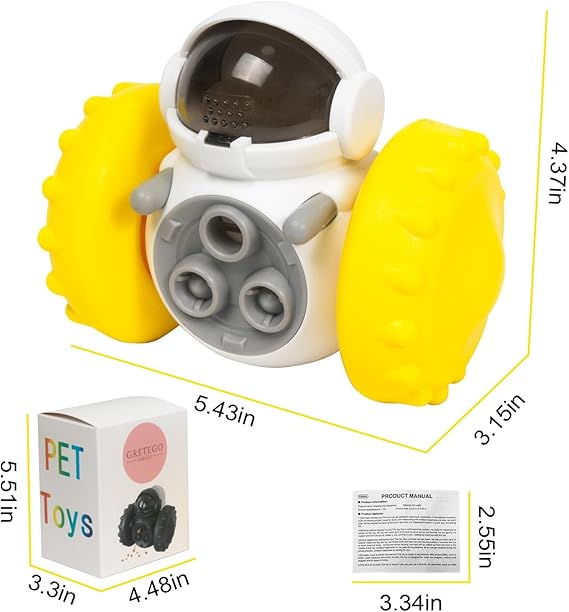 GRETEGO G&GO Dog/Cat Interactive Slow Feeder Puzzle Toy, Cognitive Dog Toys, Dog Treat Dispenser Toy, Interactive Pets Toys for Indoor, Treat Dispensing Dog Toys, Slow Eating Dog Bowl (Yellow)