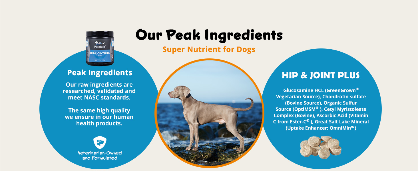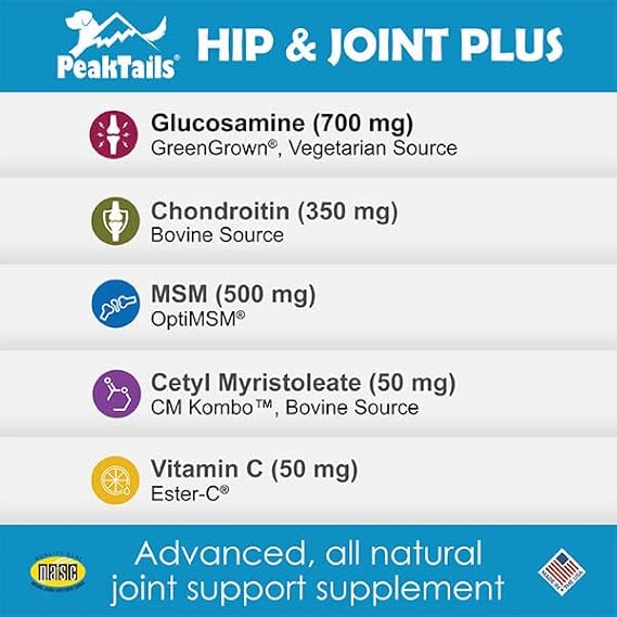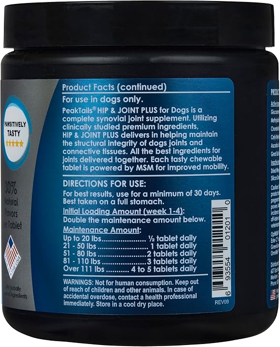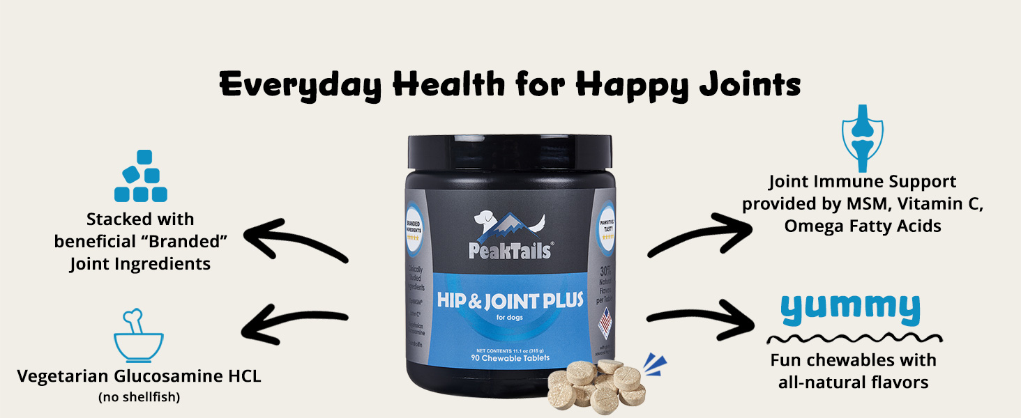 KALA HEALTH PeakTails Hip & Joint Plus for Dogs - 90 Tablets, Glucosamine, Chondroitin, OptiMSM & Ester-C - Supports Joint Mobility & Comfort