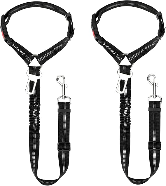 BWOGUE 2 Packs Dog Cat Safety Seat Belt Strap Car Headrest Restraint Adjustable Nylon Fabric Dog Restraints Vehicle Seatbelts Harness