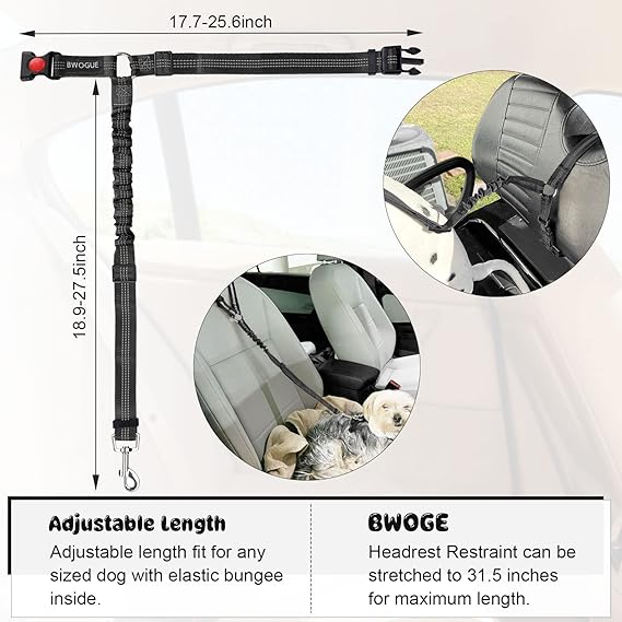 - ADJUSTABLE LENGTH: Dogs come in different sizes and weights. The Bwogue Headrest Restraint is adjustable between 18-30 inches,You can easy to adjust the dog leash to the suitable length to keep your pet in a safety state.
