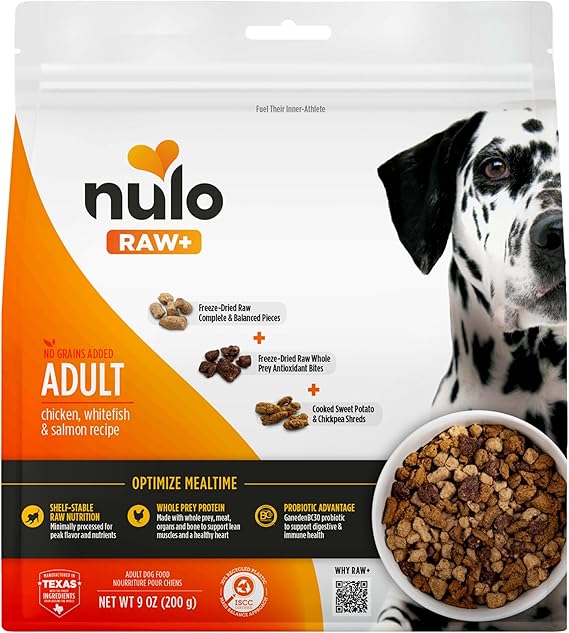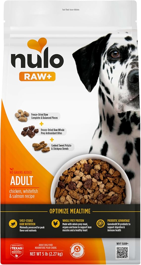 Nulo Freeze-Dried Raw+ Adult Dog Food, Chicken, Whitefish and Salmon, 5 lb Bag