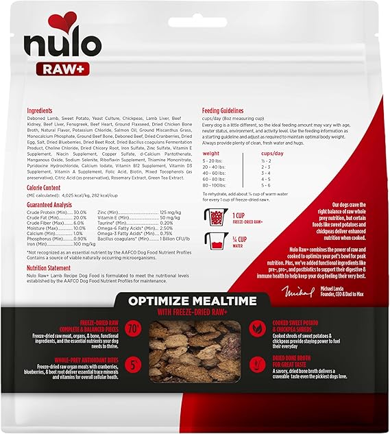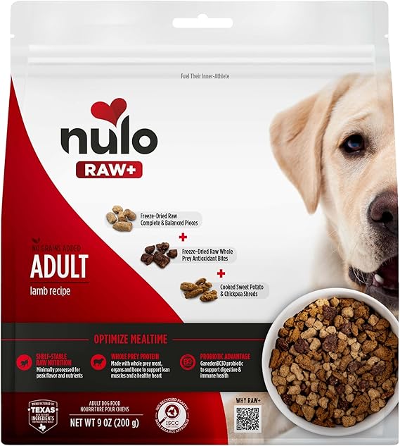 Our dogs crave the right balance of raw whole prey nutrition, but certain foods like sweet potatoes and chickpeas deliver enhanced nutrition when cooked. Nulo Raw combines the power of raw and cooked to optimize your pet's bowl for peak nutrition. Plus, we've added functional ingredients like pre-, pro-, and postbiotics to support their digestive & immune health to keep your dog feeling their very best.