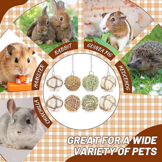 8 Pack Bunny Chew Grass Balls, Natural Hanging Chew Grass Toys & Rolling Chew Toys for Small Animals, Bunny Treats for Rabbits, Chinchillas, Hamsters,Guinea Pigs, Improving Dental Health