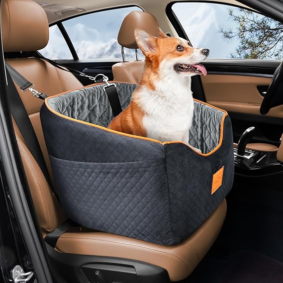 - Comfortable and Secure: The pet car seat is made of high-quality breathable fabric with a super soft plush rim, providing plenty of room for small dogs to readjust and get comfortable. The firm foam construction maintains its shape, offering a soft and cozy place for your dog to relax in extreme comfort. The non-slip bottom and safety tethers ensure that both your dog and the seat stay securely in place, preventing any sliding around while driving.