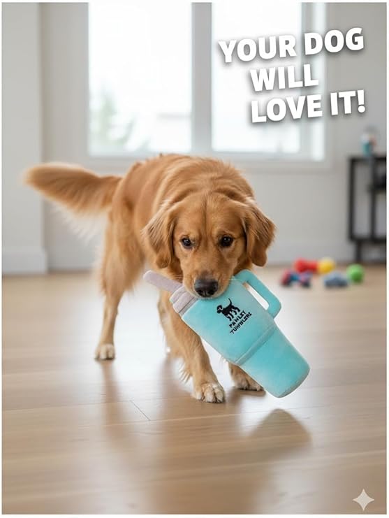 Stanley Cup-Inspired Crinkle & Squeak Dog Toy - Soft Plush, Durable Play for Medium & Large Dogs (Turquoise)