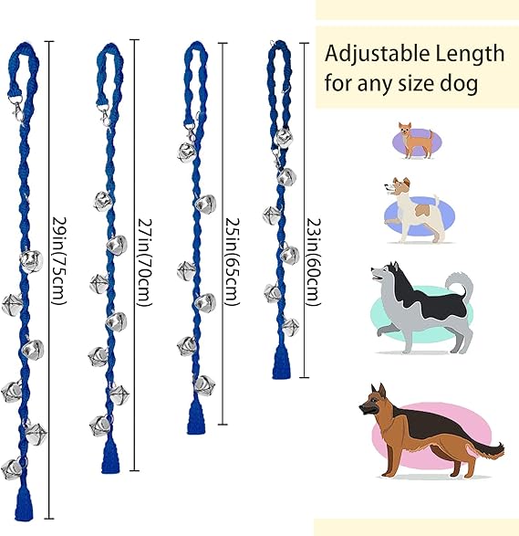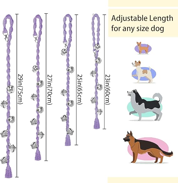 - 【Long Enough for Any Size Dog】The dog doorbell has a length of 35"(90cm) , with a snap button for you to adjust the length according to the door and dog. Longer than most dog door bells and adjustable for any size dog from small to large.