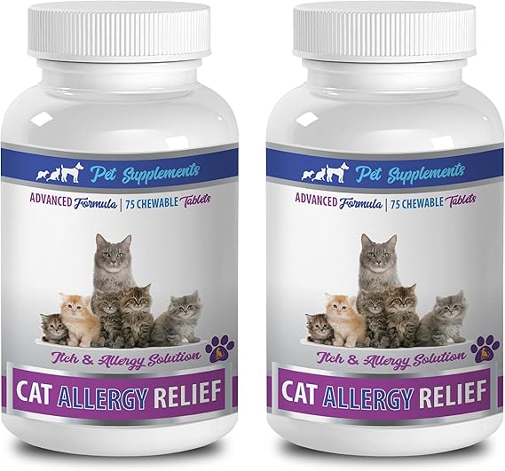 cat allergy relief treats - CAT ALLERGY RELIEF COMPLEX - ITCH RELIEF SOLUTION - IMMUNE SUPPORT - VETS RECOMMENDED - pet wellbeing immune support cats - 2 Bottles (150 Chewable Tablets)
