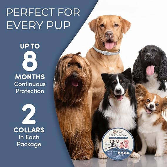Natural Flea and Tick Collar for Dogs & Cats - 8 Month Protection - Waterproof, Adjustable - 2 Pack - Essential Oils, Chemical-Free, Safe for Pets, People & The Planet