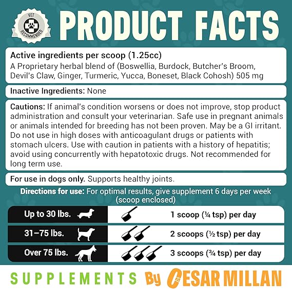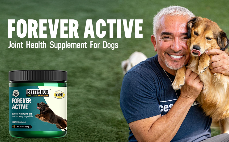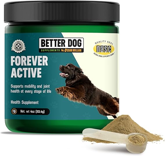 Better Dog Joint Supplement Powder by Cesar Millan - Forever Active Dog Hip & Joint Care with Boswellia, Devilโs Claw & Blend of Other Herbs for Mobility & Bone Health for Small & Large Breeds - 4 oz