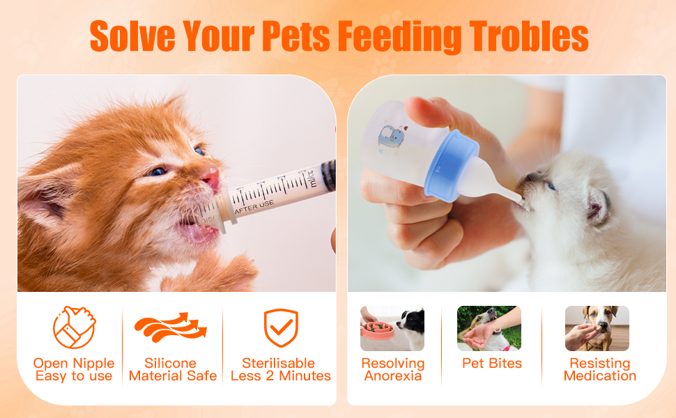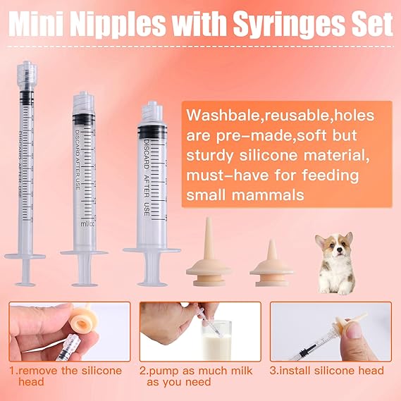 - FEEDING SUPPLIES: Contains essential feeding equipment designed specifically for newborn puppies and kittens