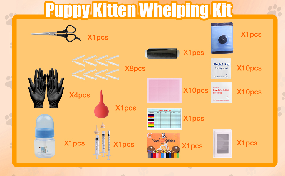 whelping kit for Puppies Birth,Puppy Birthing Supplies for Newborn Puppies and Kittens for Keeping Kitten Dogs Cats Feeding Sets Supplies Includes Whelping Collars Record,Birthing Box