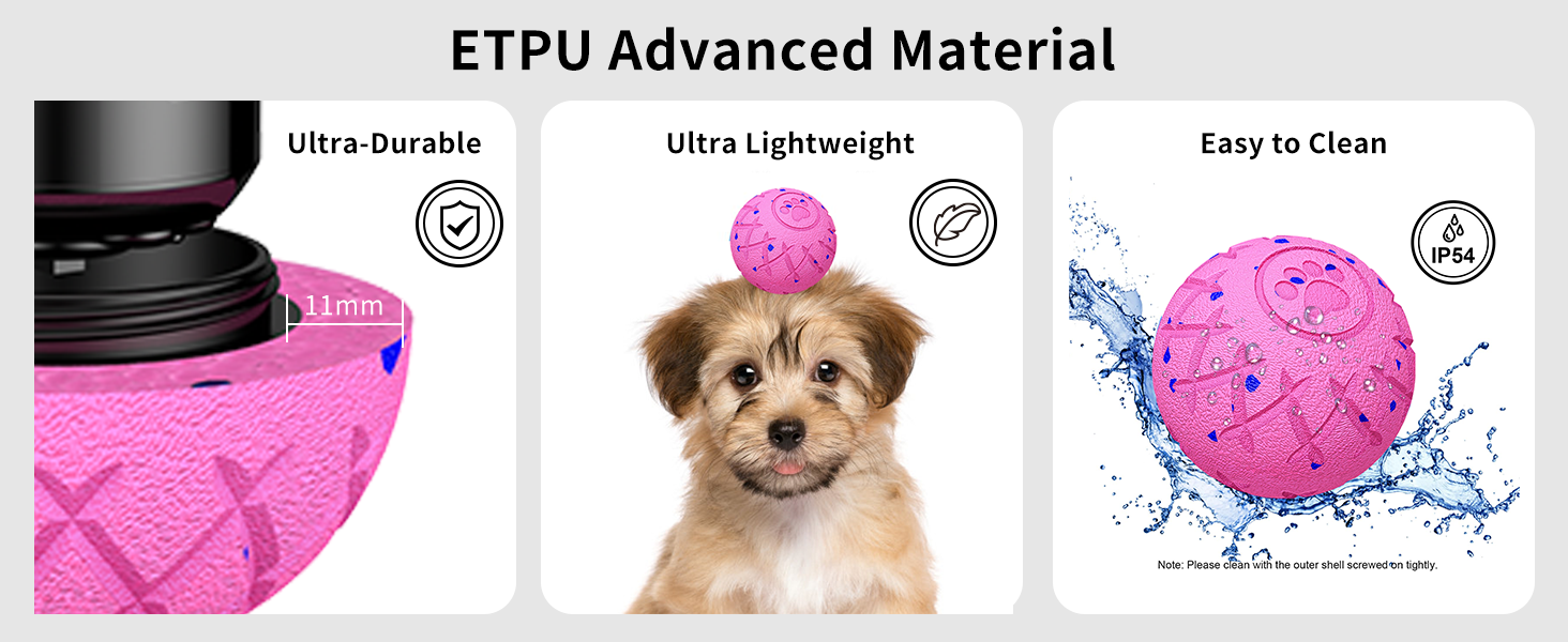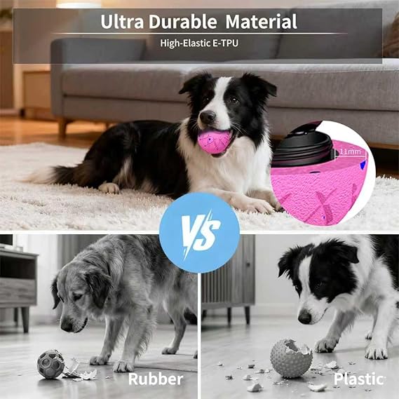 - 【Waterproof and easy to clean】The dog ball has an IP54 waterproof rating, making it suitable for use in multiple venues and meeting indoor and outdoor usage requirements. It can be played with in living rooms, park lawns, beaches, or swimming pools. The dog ball does not absorb water, does not leak, and does not deform. It is lightweight and floats easily on the water surface. Cleaning the dog ball is a breeze—simply wipe off any dirt and rinse the shell after ensuring it is securely tightened.