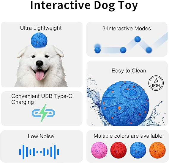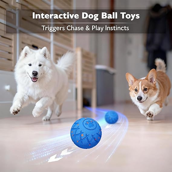 - 【Smart Motion Sensing and USB Charging】The dog toy is equipped with a motion sensor that automatically enters energy-saving sleep mode after playtime. When gently pushed, it immediately resumes bouncing and moving, keeping your dog engaged in an unpredictable and intelligent chase mode. This helps eliminate boredom and loneliness while stimulating your dog's natural instinct to chase. Charging is easy using the included Type-C data cable. A full charge in 50 minutes provides 4 hours of playtime.