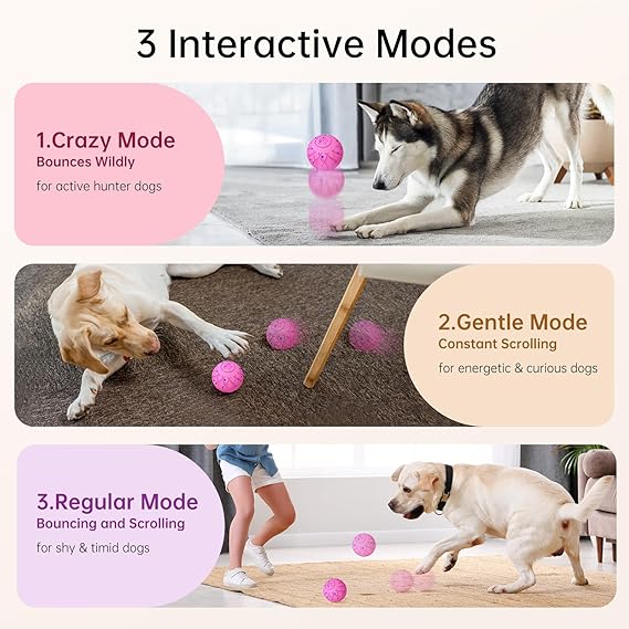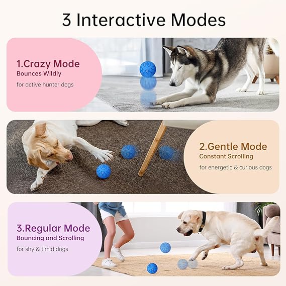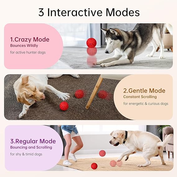- 【3 Modes to Choose From】The interactive dog toy offers 3 game modes. You can easily switch between modes (Crazy, Regular, and Gentle) to match your dog's play style and energy level. This cognitive pet toy provides mental stimulation and endless fun, keeping your dog busy and entertained.