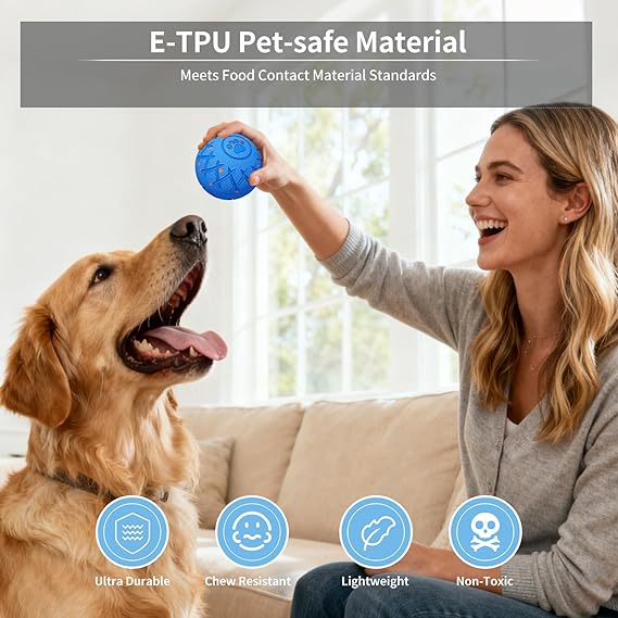 - 【Pet Safety E-TPU Material】 The dog ball is made of chew-resistant E-TPU, which is lightweight, elastic, and rigorously tested to withstand vigorous play. It is durable and portable, satisfying your dog's chewing needs, cognitive training, weight management, and addressing destructive habits such as digging or barking. This educational toy promotes your dog's physical and mental well-being, helping them become smarter, making it the perfect choice for a dog's birthday gift.