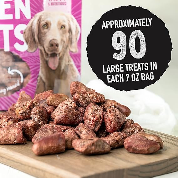 - Ideal for Training - Our Freeze-Dried Chicken Hearts are the perfect treat for rewarding or motivating your dog. Toss a treat when your dog accomplishes a task, challenge, or new trick. They're a wonderful way to reinforce good behavior.
