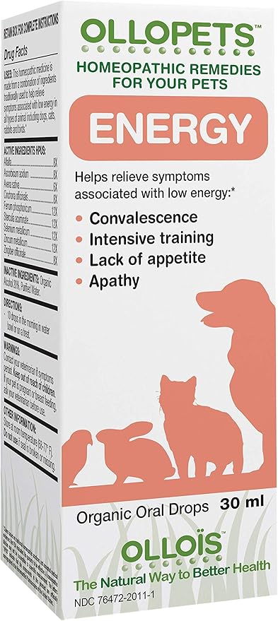 Ollopets energy - Organic homeopathic Remedy to help relieve Pets from symptoms of fatigue and apathy